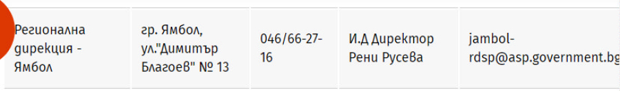 От днес сутринта в сайта на АСП като и.д. директор на Регионална дирекция Социално подпомагане Ямбол в сайта на агенцията е посочена Р. Русева