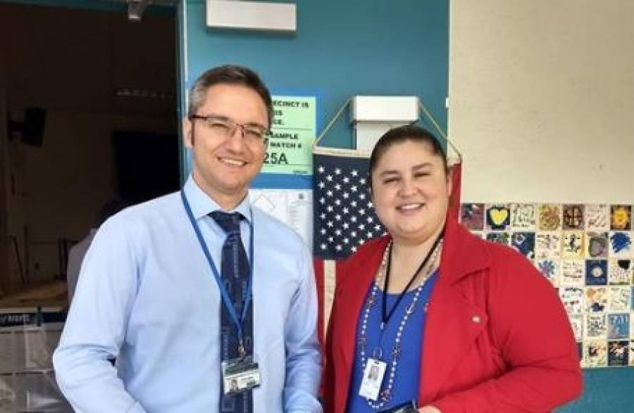 На снимката - симпатичната Люин, общински служител в Лос Анджелис, облечена политически неутрално в синьо и червено (цветовете на демократите и републиканците). :)