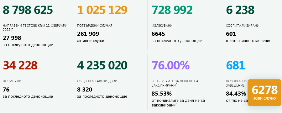 11 февр. Към 00.00 ч. някои К19 данни за областта и
