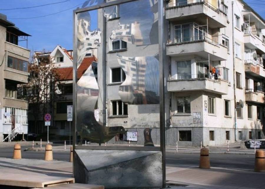 на снимката - неведимата скулпутура дарена на Ямбол, за постамента на дарението - 60 хиляди лева.