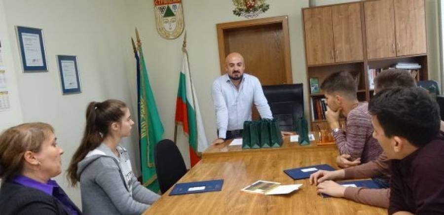 Само дни след официалното награждаване в София на учениците от СУ“П.Яворов“ за отличените разработки в ХХVІ-я НК“Родолюбие“ под надслов „110г. независима България“, Гроздан Иванов, зам.кмет на общината, лично поздрави талантливите млади хора и техния ръководител Боряна Георгиева. От името на кмета Атанас Киров той изказа искрена благодарност на Силвия Йорданова, Петър Райнов, Ивайло Йорданов , Мирослав Великов и на Боряна Георгиева, педагог-ръководител от СУ“П.Яворов“ за успешното представяне и изрази надеждата, че ще последват нови предизвикателства, нови успехи и награди, „защото вие наистина имате възможностите и желанието да доказвате какво можете!“. Г-н Иванов пожела всеки от тях да изпълни мечтата си за постъпване във ВУЗ и винаги да се гордеят, че са родени в Стралджа. Той връчи на своите гости поздравителен адрес и подарък. В последвалия разговор бяха обсъдени интересни идеи за участието на младите хора и в общоградски прояви свързани с възпитание на родолюбие и изграждане на местно самочувствие