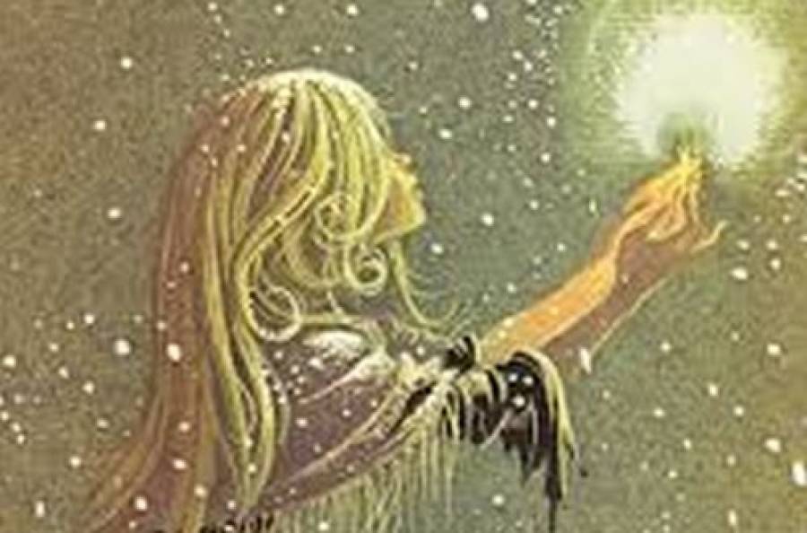 И клечките светнаха толкова силно, че наоколо стана светло като ден. Никога баба му не е била толкова голяма и хубава! Тя улови момиченцето за ръце, прегърна го и изведнъж двете в блясък и радост се издигнаха високо над земята; и там, където те хвръкнаха, нямаше нито студ, нито глад, нито неволя.