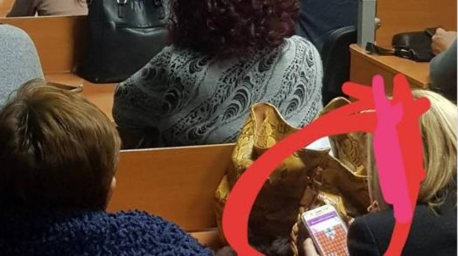 ПП Твърди се, че госпожа Петрова е дамата заснета по време на обсъждавио на общественото обсъждане на общинския бюджет да се отвлича с телефона си...