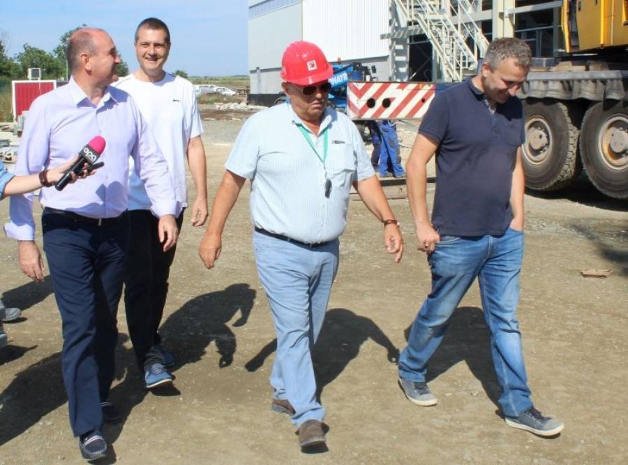След инспекцията, кметът Георги Славов и ръководителят на проекта проф. Михаил Цанков разгледаха дейности по строителството на новата инсталация за сухи строителни смеси на Баумит.