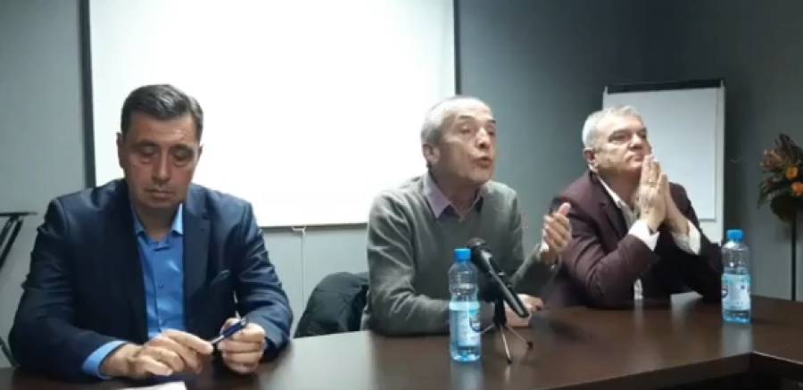 голямата зала на хотелски комплекс "Диана Палас" Срещата беше организирана от ПП АБВ. До лекарят седяха националният лидер на АБВ Румен Петков и областният Здравко Златаров