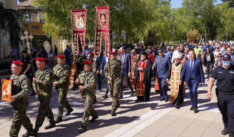 В 10:30 часа от храма потегли литийно шествие, предвождано от Духовия оркестър при Народно читалище „Съгласие-1862“ с диригент маестро Васил Шейтанов и военнослужещи от Ямболския гарнизон с иконата на Свети Георги, в която е вградена частица от мощите на светеца. В шествието участваха кметът на община Ямбол Валентин Ревански, заместник-кметовете на община Ямбол,областният управител на област Ямбол, общински съветници и граждани.