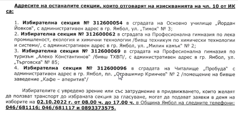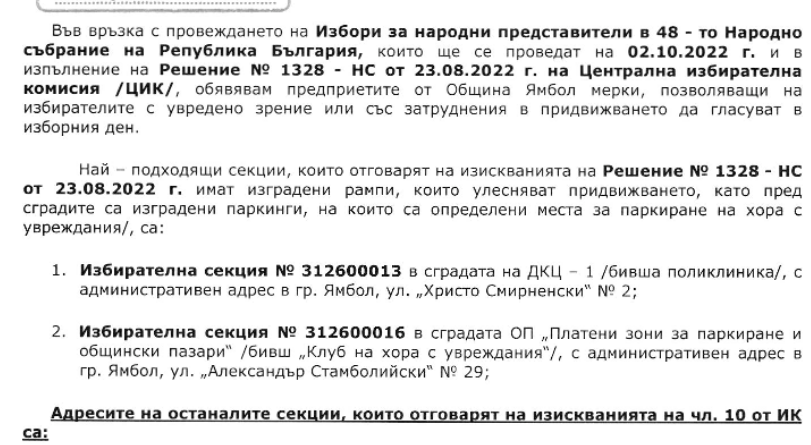 Ето къде могат да гласуват в Ямбол хората със затруднено придвижване и