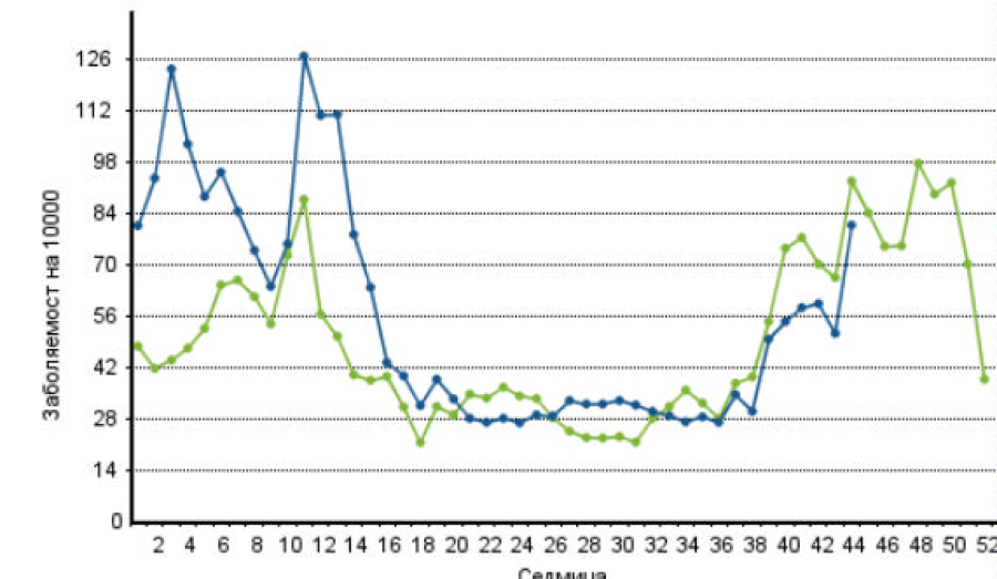 За сравнение с предходната - последна октомврийска седмица ОРЗ-тта в областта бяха с ниво 83.09 на десет хиляди, а страната 51.13
