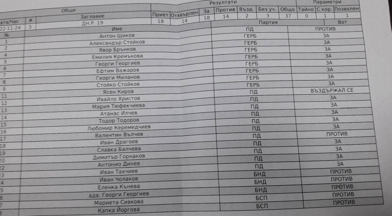 Ето кой как как е гласувал за предложението на г-н Илчев за отпадане на Декларацията