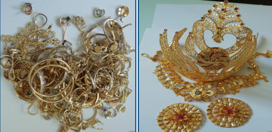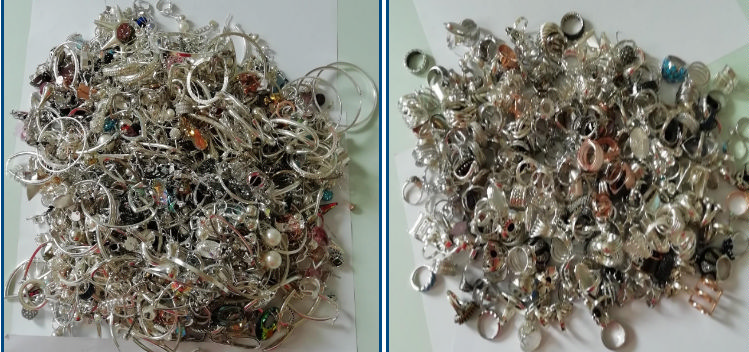 В една от групите в търга са включени отнети в полза на държавата 52 златни пръстена, медальона, синджира, гривни, обици и монети с общо тегло 1550 грама. Накитите са открити в джоба на връхната дреха и в дамската чанта на жена, която пътува със съпруга си от Турция за България. За продажба са обявени и 11.742 кг сребърни накити, които са били укрити в 22 пакета в специално изработен тайник в зоната около резервоара на автобус, пътуващ от Турция през България за Косово.