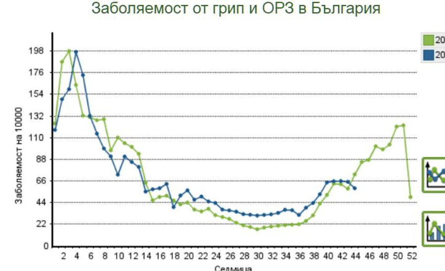 118.69 на 1000 жители са показанията за периода 28 октомври-3 ноември. 58.59 на 1000 е тя за страната за същиа период