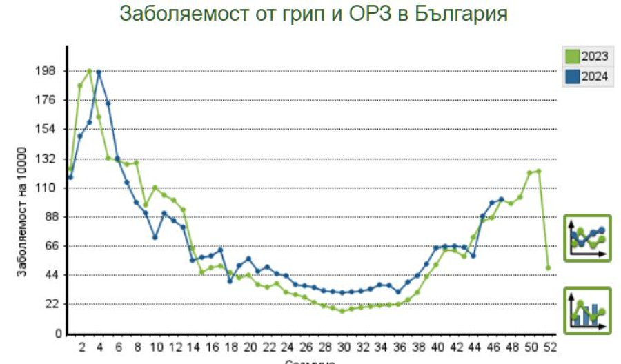 Средната заболеваечост от ОРЗ за България сега е 101.18 на десет хиляди души, била е 98.80...
