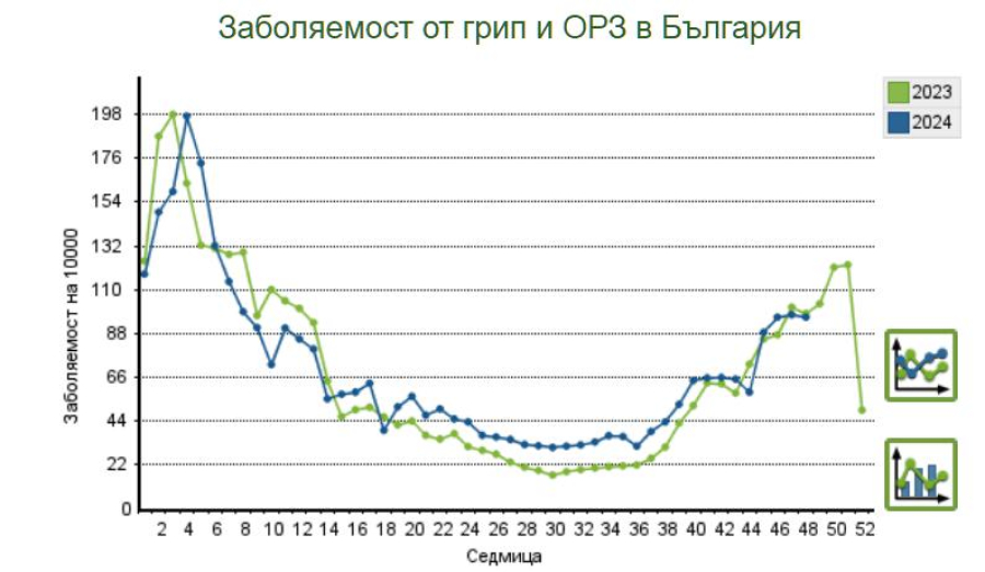 Видно от графиката - следваме показателите от миналата година. Ако всички се повтори запобва повишаването на заболеваемостта до пиковите моменти има време