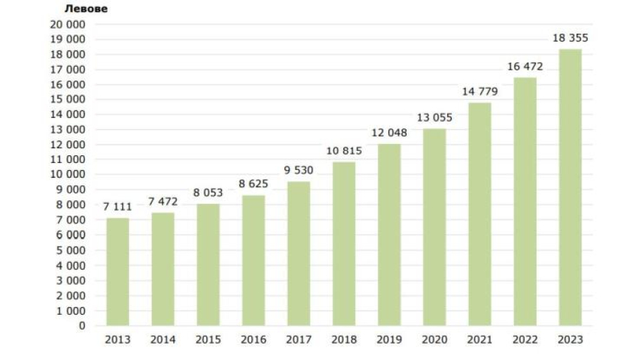 Спрямо 2022 г. средната годишна работна заплата през 2023 г. нараства в