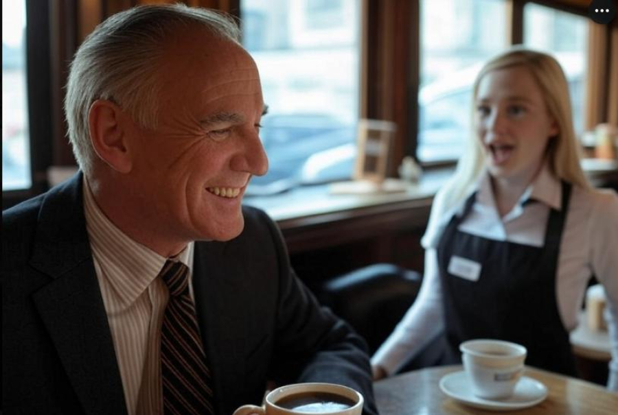 Човекът от черната кола разби очакванията на Ели още с влизането си. Вместо младежката елегантност, която си бе представяла, той излъчваше зрялото достойнство на човек, преживял достатъчно, за да разбира стойността на тихите моменти. Бръчиците около очите му говореха за живот, изживян с усмивка, а изисканото му държание контрастираше с непретенциозната атмосфера на закусвалнята като коприна върху дънков плат. Той се настани близо до писателя и между двамата премина поглед, натежал от неизречени истории.