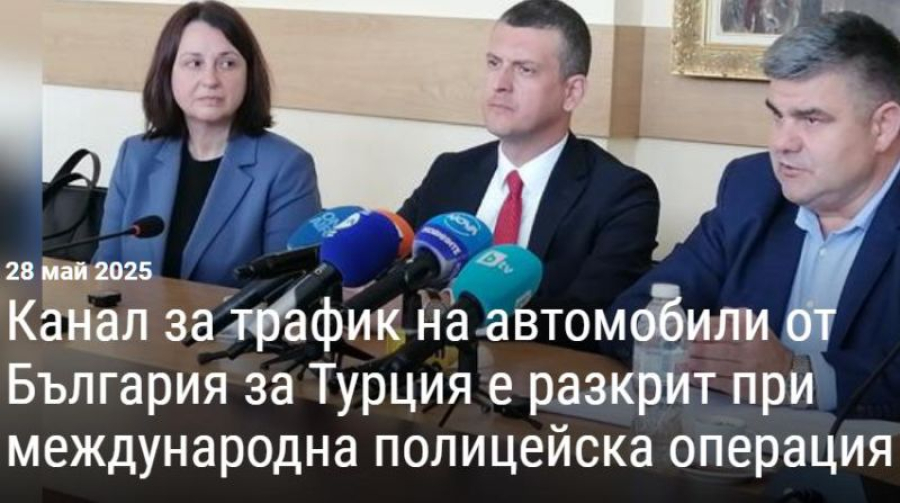 Началникът на „Криминална полиция“ в Главна дирекция „Национална полиция“ припомни, че миналата година отново по предоставена от ГДНП информация за нерегламентиран внос на автомобили от България в Турция са реализирани две успешни операции. През февруари 2024 година в Турция бяха арестувани 19 души за участие в група, пренабивала номера на коли от България. Тогава бяха конфискувани 35 автомобила. При действията, извършени през ноември 2024 година, турските власти разкриха престъпна група за продажба на нелегално внесени от България автомобили и резервни части. В операцията "Change" беше установено, че за година и половина групата е внесла нелегално от България общо 181 автомобила от различни марки и модели. Задържани бяха 8 души, сред които четирима български граждани.