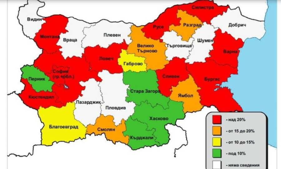 - В Силистра – над 60% липса, критичен недостиг над 30% в Монтана, Кюстендил, Варна, Русе, Сливен