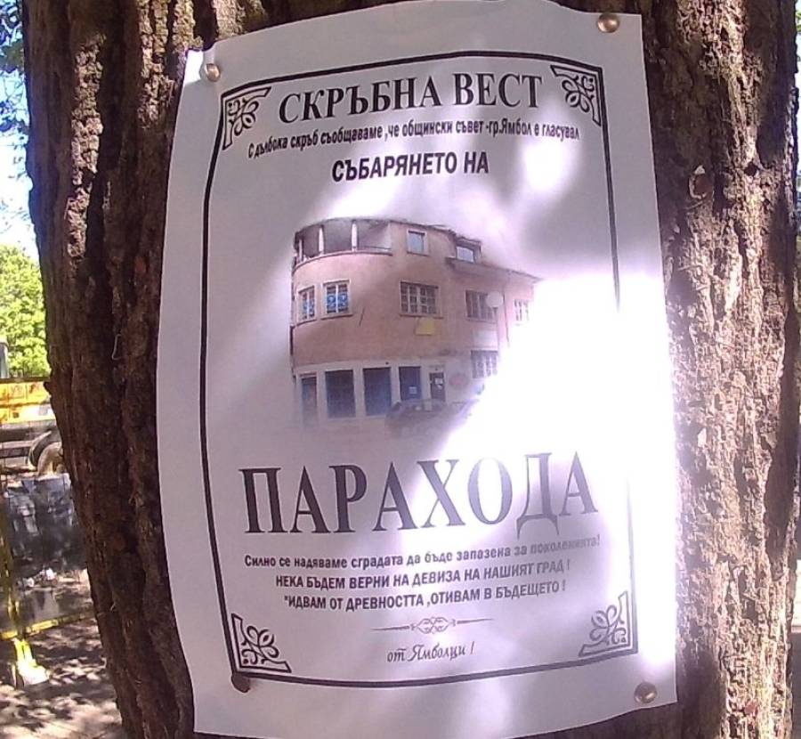 След като на ръководствата на Съюза на архитектите, на Камарата на архитектите в Ямбол, на опозиционните партии, на местната организация на управляващите ГЕРБ и АТАКА, НФСБ, ВМРО на Областния управител дори не им хрумна, че могат да направят нещо срещу гласуваното в Общинския му съвет предложение на кмета и областен координатор на ГЕРБ Георги Славов да бъде съборен "Парахода" и на негово място да се направи паркинг за нялолко коли за Синя зона, то...
