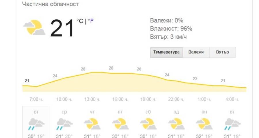 На много места в страната ще има краткотрайни валежи, главно в следобедните часове и до полунощ придружени с гръмотевици. Ще има условия за градушки. В отделни райони на Западна и Централна България ще има значителни валежи. Ще духа слаб северен вятър. Максимални температури, предимно между 26° и 31°, в София около 26°.