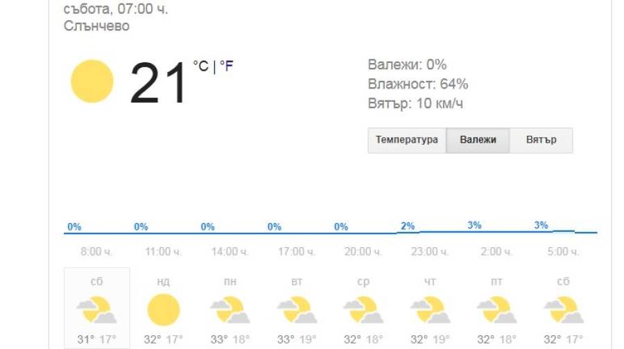 На 04.08.2018 г. ще преобладава слънчево време, с временни увеличения на облачността, но валежи са малко вероятни. Ще духа слаб до умерен вятър от изток-североизток. Максималните температури ще са предимно между 29° и 34°, в София – около 29°