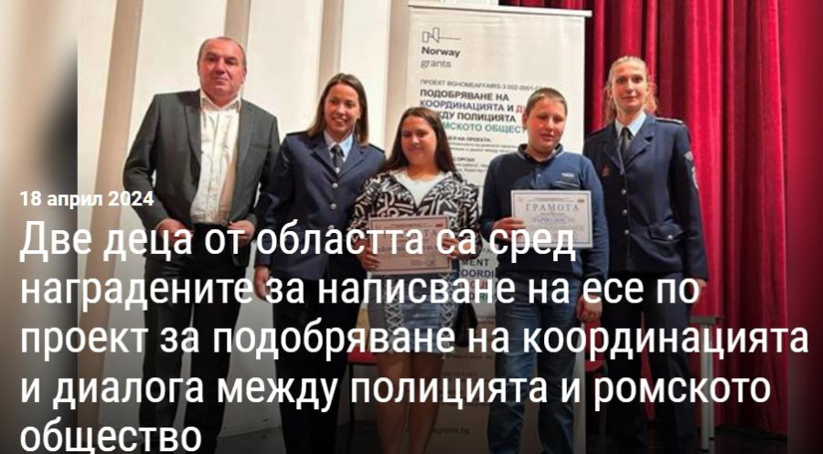 Написването на есето бе една от дейностите, заложени в проекта „Подобряване на координацията и диалога между полицията и ромското общество“, финансиран по програма „Вътрешни работи“ на Норвежкия финансов механизъм. Конкурсът беше проведен миналата година сред учениците от всички училище на 10 области на страната.