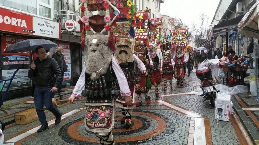 Младите кукери бяха посрещнати от членове на водещата организация по проекта - Асоциацията за насърчаване и поддържане на Културата на Къркпънар в Одрин – организатор на провеждането на демонстрацията в центъра на града.