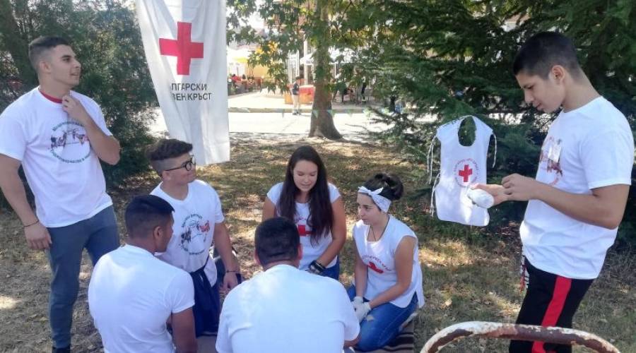 Доброволците от БМЧК бяха разположени на обособен пункт и представиха пред участниците демонстрация на техника за спасяване върху манекен на пострадал в безсъзнание с нарушено дишане и кръвообръщение – Кардио-пулмонална ресусцитация, след като са освободени дихателните пътища. Доброволците представиха последователността на действията и стъпките, когато имаме човек в безсъзнание, липса на дишане и липса на кръвообръщение – установяване степента на съзнание на пациента, осигуряване на проходими въздушни пътища, проверка за наличие на дишане, обдишване, извънгръдни притискания на сърцето и др. Демонстрацията предизвика интерес сред младежите, които изразиха желание да се докоснат до учебния манекен и се опитаха да повторят стъпките на спасяването.