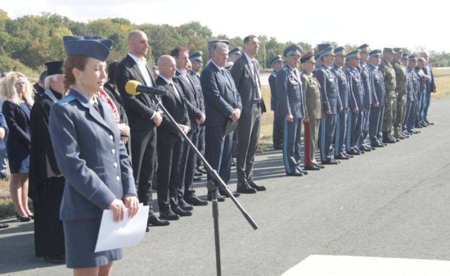 Като авиационен поздрав над базата прелетяха самолети и хеликоптери от състава на българските Военновъздушните сили. .