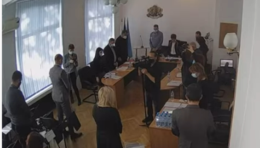в памет на жертвите от вчера започна заседанието на ОбС "Тунджа". По предложение на Председателя и гласуване, то отново протече като закрито, във връзка с Пандемията. За да бъдело по-кратко се предложенията направени за дневния ред не се четяха, а само решенията на комисиите Съветниците разглеждаха и гласуваха следните точки.
