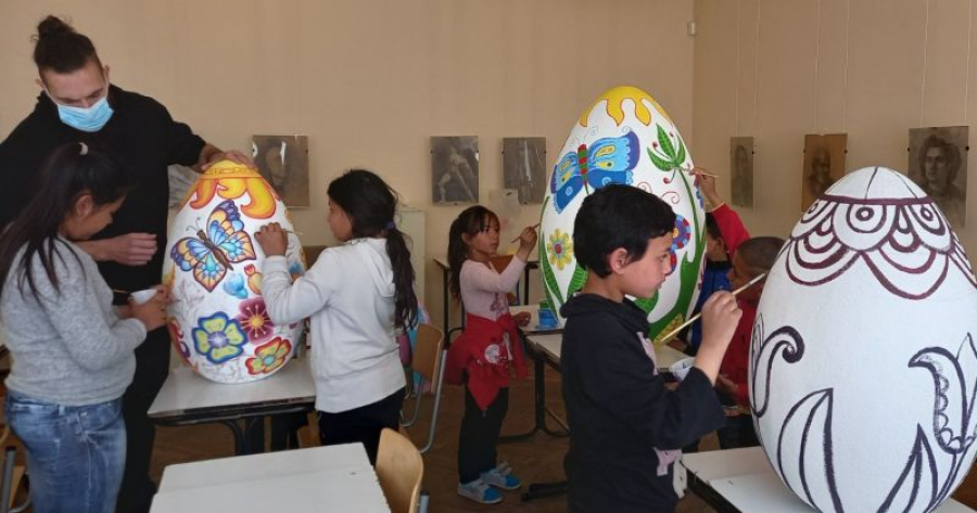 В Центъра децата и учениците от община „Тунджа“ изрисуваха яйцата, които ще бъдат поставени пред административната сграда като великденска украса.