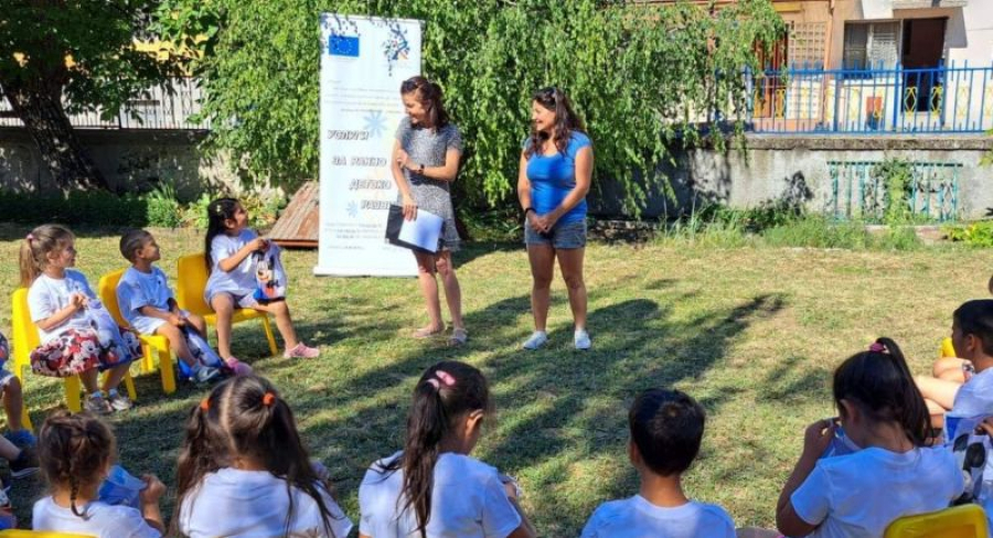 Екипът на общностния център беше подготвил за децата плодове и лакомства, за да възстановят сили след щурите игри и тениска с логото на проекта.
