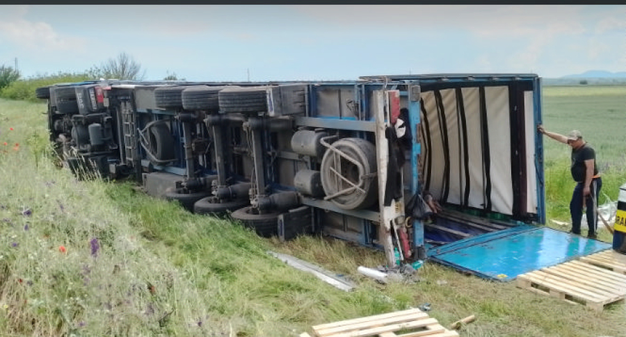 Турски ТИР, натоварен с 20 тона моторно масло, се обърна в