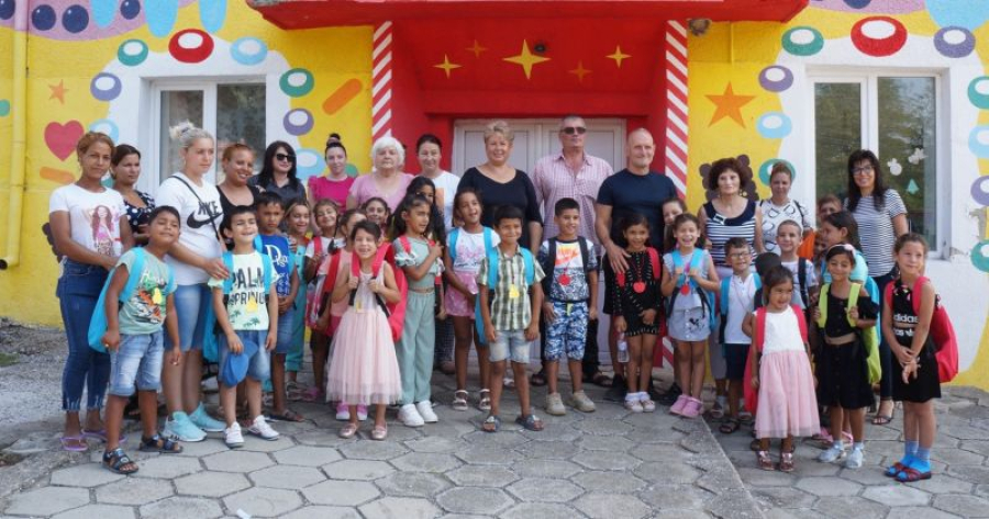 Пред Общностния център за деца и семейства в с. Козарево официално им бяха връчени и подаръците от лятното училище – раници, пълни с материали и помагала за първи клас.