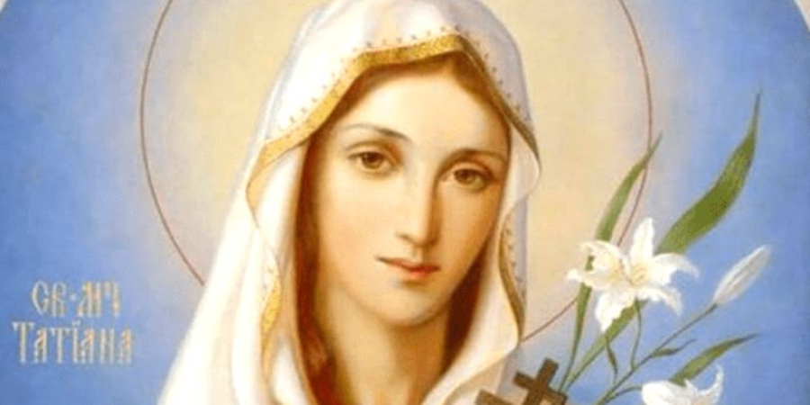 Татяна Света мъченица Татяна произлизала от знатно и богато римско семейство, което я възпитало от ранно детство в християнската вяра, макар нейният баща да бил три пъти прeфект на гр. Рим. Изцяло проникната от тази вяра, Татяна била посветена за дякониса и всецяло се отдала на милосърдие и непрестанна молитва. Тя се отказала от светски радости и се обрекла на целомъдрие и по този начин още повече засияла като достойна за мъченически венец.