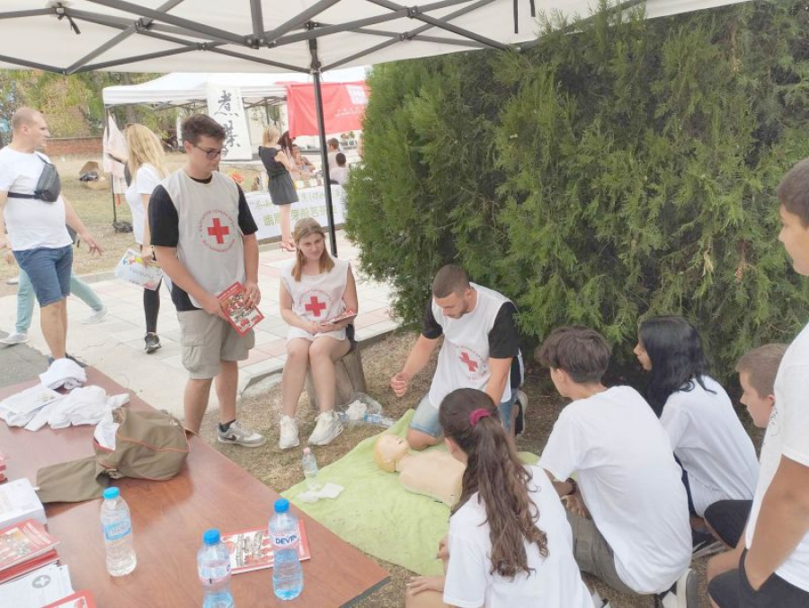 Доброволците от БМЧК направиха демонстрация на техника за спасяване върху учебен манекен на пострадал в безсъзнание с нарушено дишане и кръвообръщение – Кардио - пулмонална ресусцитация, след като са освободени дихателните пътища. Доброволците представиха последователността на действията и стъпките, когато имаме човек в безсъзнание, липса на дишане и липса на кръвообръщение - установяване степента на съзнание на пациента, осигуряване на проходими въздушни пътища, проверка за наличие на дишане, обдишване, извънгръдни притискания на сърцето и др. Демонстрацията предизвика интерес сред младежите, които изразиха желание да се докоснат до учебния манекен и се опитаха да повторят стъпките на спасяването.