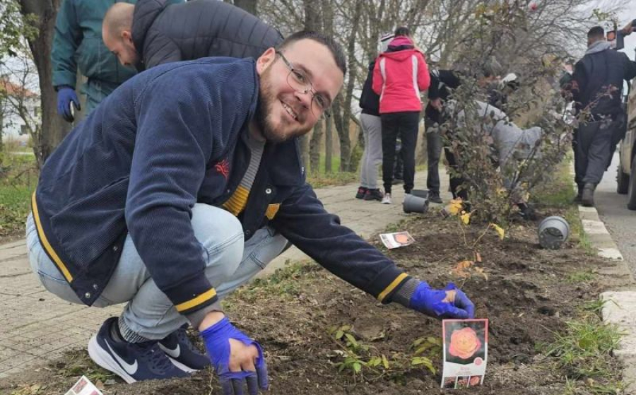 Около 500 рози бяха засадени по продължението на главния път в село Роза, за да довършат дължината му и да допринесат за неговото разкрасяване.
