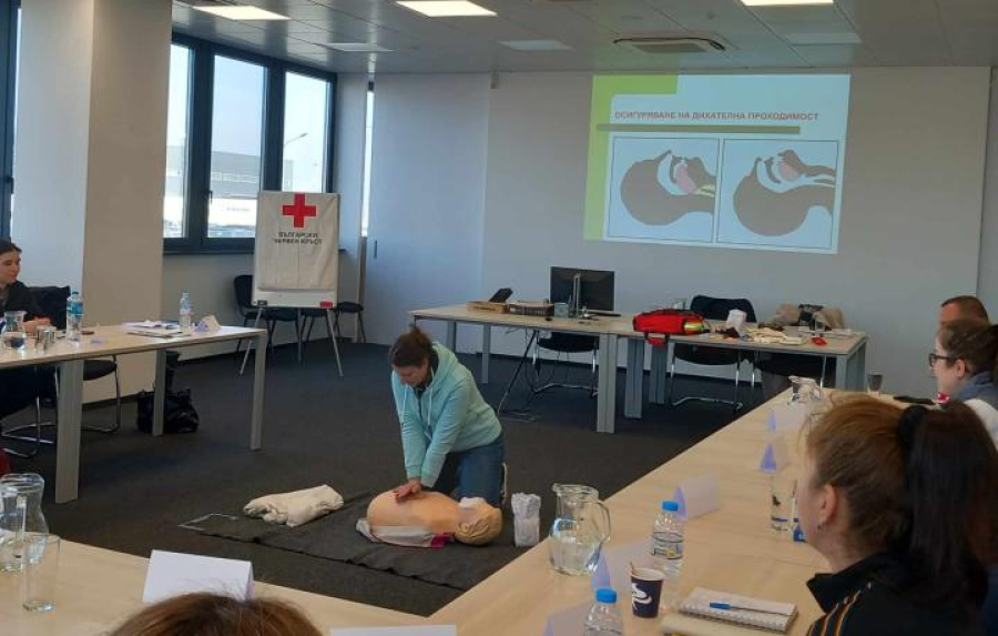 Всеки участник получи удостоверение за преминат курс „Първа помощ на работното място” на БЧК, със срок на валидност 5 години.
