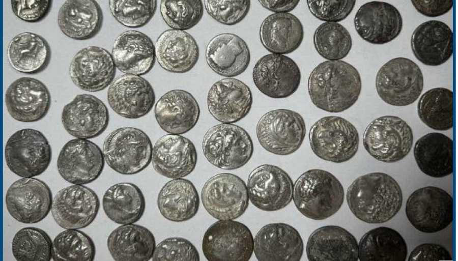 Митническите служители на Митнически пункт Лесово задържаха 1871 старинни монети, върхове на стрели и части от старинни накити и предмети при проверка на товарен автомобил. Те са били укрити под леглото на водача в кабината на превозното средство.