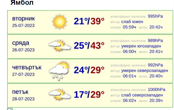 26 юли - очакваме /абсолютен?/ температурен максимум в Ямболско