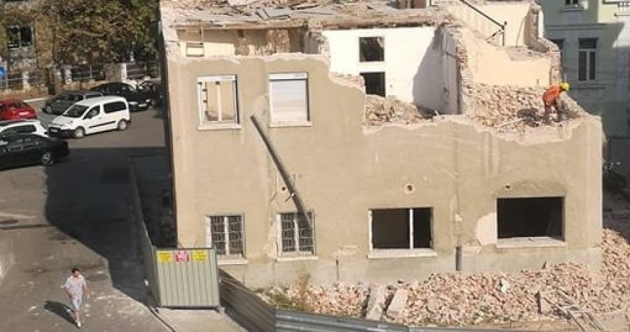 И след вчерашния инцидент със срутилите се отломки върху колата на общински съветниктази сутрин работите по обекта на бившата фирма на кмета в Центъра., работите продължават, информира Стойчев Нюз. Е, работникът вече е с каска, но повече мерки по-разширяване обезопасяващата зона покрай не са взети...