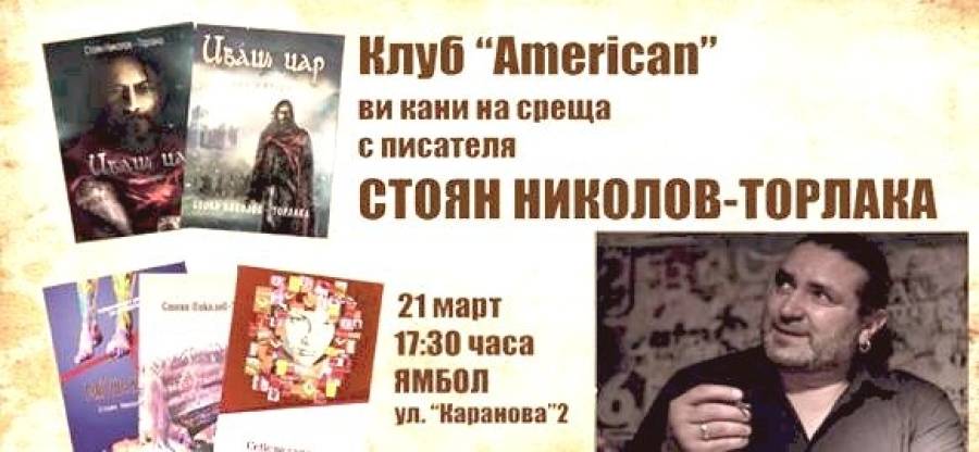 Писателят Стоян Николов-Торлака Клуб American на ул. „Каранова“2 на 21 март от 17:30 часаhttps://www.facebook.com/clubamerican/