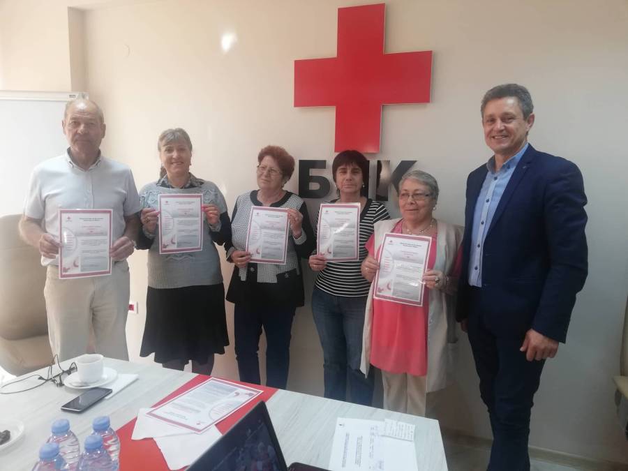 Директорът на Секретариата на ОС на БЧК-Ямбол, инж. Митко Филипов връчи благодарствени грамоти на участниците в Национално състезание по Първа помощ за възрастни хора, провело се на 12 октомври 2019 г. в НУЛЦ на БЧК-с. Лозен.