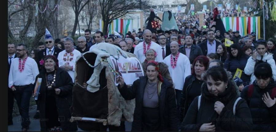 от непознатите лица -човекът с карнавалната шапка е общинският съветник в Приморско, експредседател на местната комисия по култура на ОбС Георги Зафиров Гонзо. А шапката е оригинална - подарена му e от експредседателя на Международната федерация на карнавалните градове.