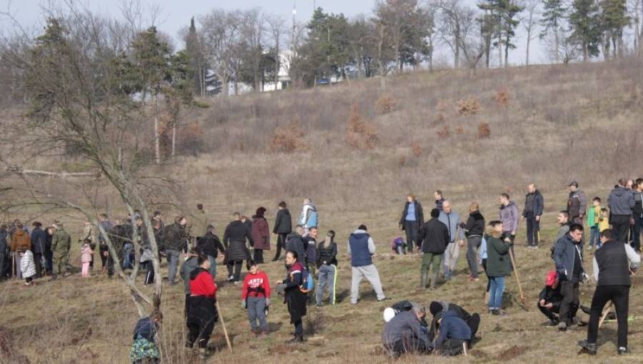 Още в 10 часа се бяха събрали над 120 човека, предимно млади хора и военнослужещи от Авиобаза Безмер. Общинското предприятие „Паркове, зони за отдих и спорт” започна засаждането на част от дръвчетата цер и бор, които бяха дарени на нашия град от „Гората бг”.
