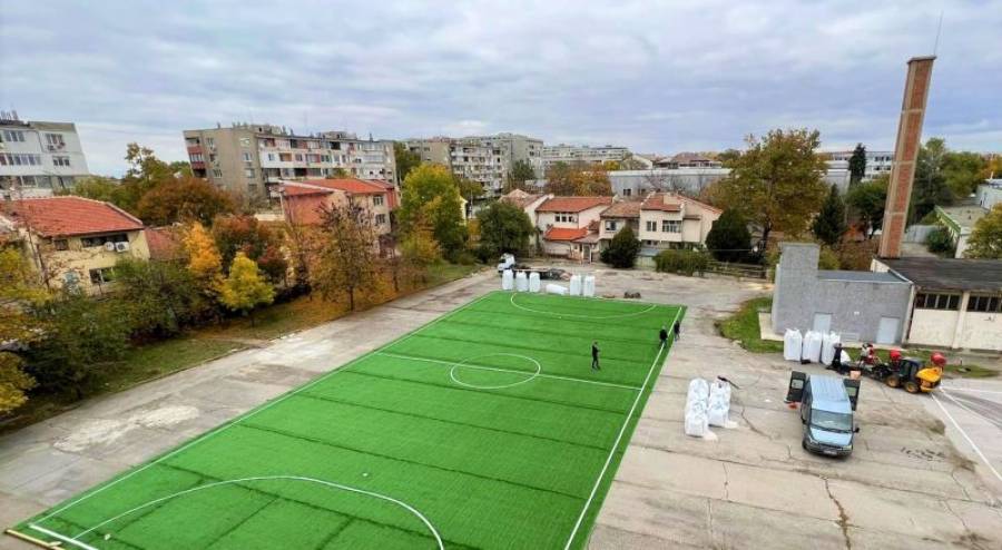 Професионална гимназия по лека промишленост, екология и химични технологии, Спортно училище "Пиер дьо Кубертен" и ПГ "Васил Левски", приключи ремонтирането на игрището до блок 21 в ж.к. "Георги Бенковски"