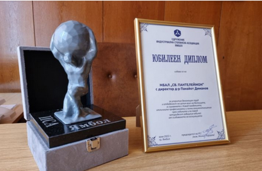 Сряда, 22 Юни 2022 18:33МБАЛ „Св. Пантелеймон“ получи отличие от Индустриалната стопанска асоциация (ИСА) в Ямбол. Областната болница бе удостоена с юбилейна пластика и грамота на тържественото отбелязване на 40 години от създаването на Асоциацията.