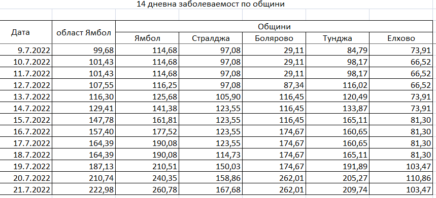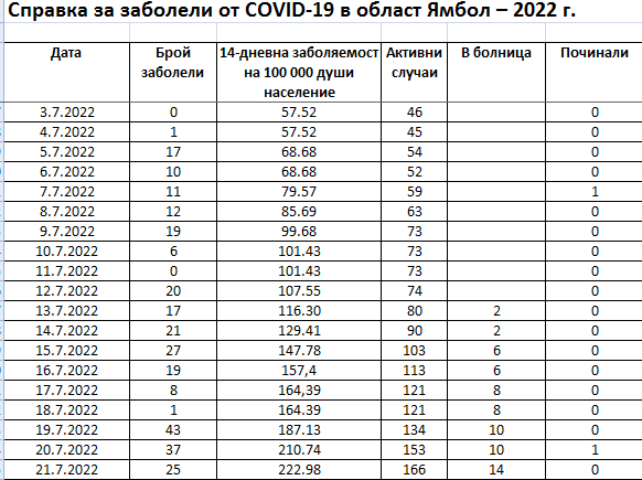 Област Ямбол е пред влизане в червената зона на COVID-19