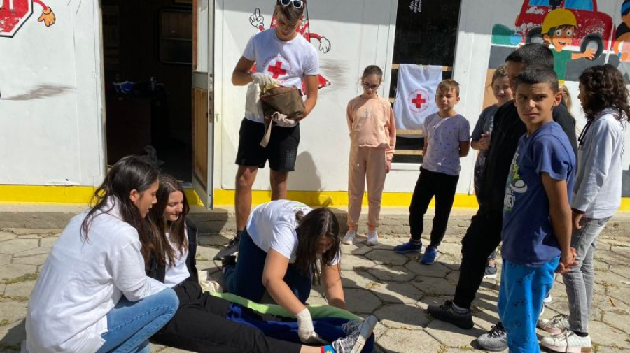 След което доброволци на БМЧК демонстрираха как се оказва първа долекарска помощ на пострадало лице при пътно транспортно произшествие. Доброволците показаха уменията си за спиране на кръвотечение и обездвижване на долен крайник. Като спазиха всички правила за оказване на помощ, съгласно Спасителна верига за оказване на първа помощ.