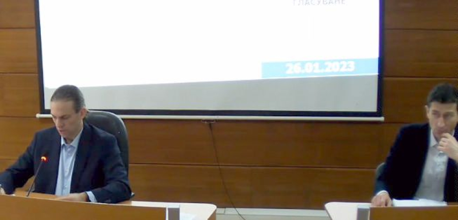 От администрацията в залата бе зам. кметът Васил Александров, с председателя Шиков - двама свързани с ПП-тата отпред.