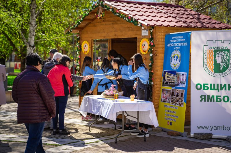 По същото време ученички от Професионална гимназия по туризъм „Алеко Константинов“ – Ямбол и техни учители раздадоха над 700 малки козунака на минувачите, подарък от Община Ямбол и от Професионална гимназия по туризъм „Алеко Константинов“ за предстоящия светъл християнски празник.